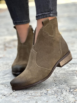 Kowbojki te wyróżniają się eleganckim, oliwkowym odcieniem, który doskonale komponuje się z różnymi stylizacjami – zarówno casualowymi, jak i bardziej wyrazistymi. Charakterystyczny, niski obcas oraz subtelne przeszycia dodają im autentycznego kowbojskiego charakteru, a zamek błyskawiczny po wewnętrznej stronie ułatwia zakładanie i zdejmowanie butów.