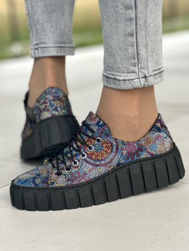 Multikolorowe trampki damskie skórzane marki OLEKSY to połączenie wyjątkowego designu i wysokiej jakości wykonania. Buty te zostały wyprodukowane w Polsce, co gwarantuje solidność i staranność w każdym detalu. Wykonane z naturalnej skóry, są nie tylko trwałe, ale również bardzo wygodne. Dodatkowo, trampki te posiadają wygodną, elastyczną podeszwę, dzięki której zapewniają komfort noszenia przez cały dzień. To idealne buty dla kobiet ceniących wygodę, jakość i styl.
