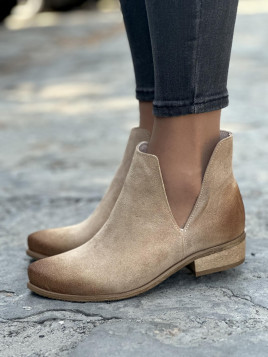 Botki wyróżniają się subtelnym, beżowym odcieniem, który nadaje im elegancji i uniwersalności – idealnie komponują się zarówno z casualowymi, jak i bardziej formalnymi stylizacjami. Delikatne wycięcie na cholewce dodaje lekkości i nowoczesnego charakteru, podkreślając jednocześnie kobiecą sylwetkę.