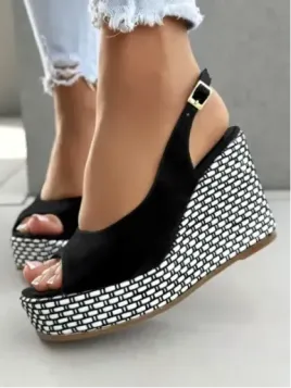 Czarne, klasyczne, zmysłowe. A jednocześnie odważne, nowoczesne i stabilne jak Twoje podejście do życia. Platforma w unikalny wzór przyciąga spojrzenia – bez krzyku. Robi wrażenie. I to jakie!
