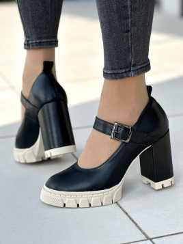 Buty te wyróżniają się masywną, profilowaną podeszwą, która zapewnia doskonałą przyczepność i jednocześnie dodaje odrobinę sportowego sznytu do eleganckiej formy. Pasek z klamrą na wysokości kostki podkreśla sylwetkę, a jednocześnie stabilizuje stopę, co sprawia, że te półbuty są zarówno stylowe, jak i wygodne.