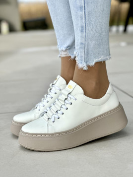 Podsumowując, białe trampki damskie skórzane OLEKSY na beżowej grubej podeszwie to stylowy i komfortowy wybór dla każdej kobiety, która pragnie łączyć modę z wygodą.