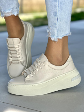 Cholewka wykonana z naturalnej skóry gwarantuje nie tylko trwałość, ale także komfort noszenia. Beżowy kolor sprawia, że trampki są niezwykle uniwersalne, łatwo komponując się z różnorodnymi stylizacjami – od casualowych po bardziej eleganckie.