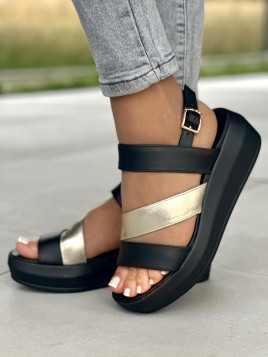 Czarne sandały damskie skórzane OLEKSY polskiej produkcji na grubym spodzie