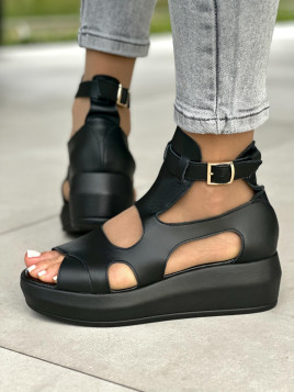 Czarne sandały damskie skórzane OLEKSY polskiej produkcji na grubym spodzie
