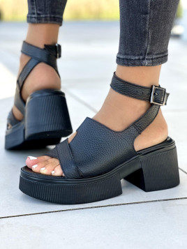 Czarne sandały damskie skórzane OLEKSY polskiej produkcji na grubym spodzie