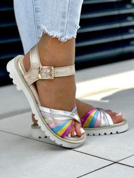Multikolorowe miękkie i lekkie sandały OLEKSY wykonane są z wysokiej jakości skóry naturalnej, co sprawia, że są nie tylko stylowe, ale również wytrzymałe i komfortowe. sandały posiadają różnorodne metaliczne kolorowe paski, co dodaje im charakteru i sprawia, że są doskonałym wyborem dla osób, które lubią wyróżniać się z tłumu.
