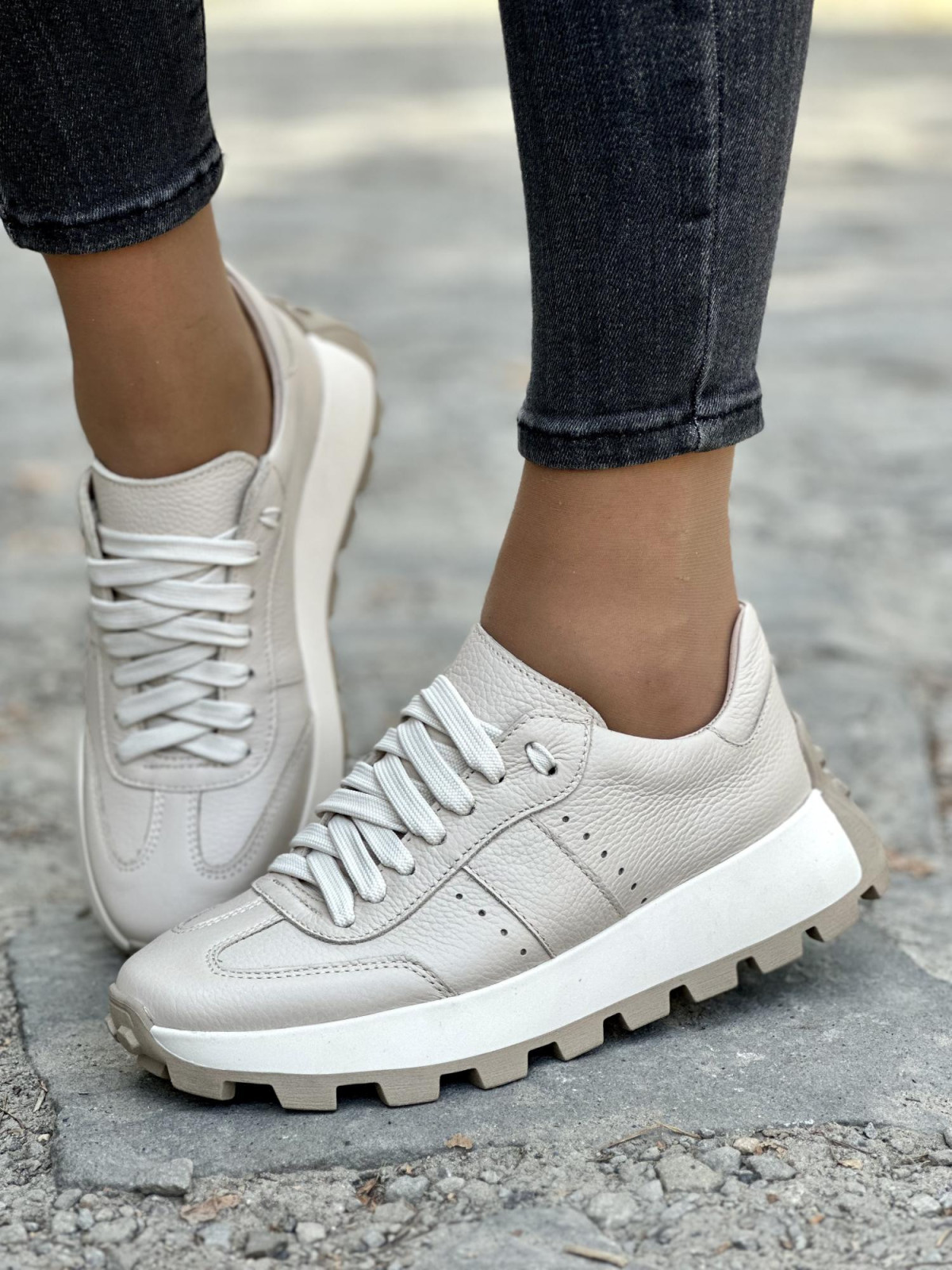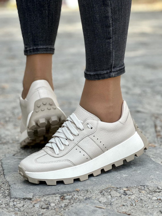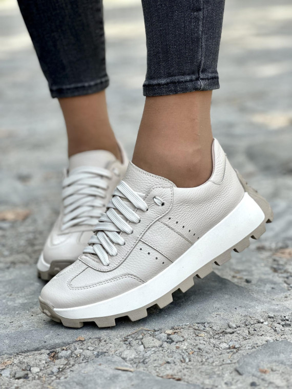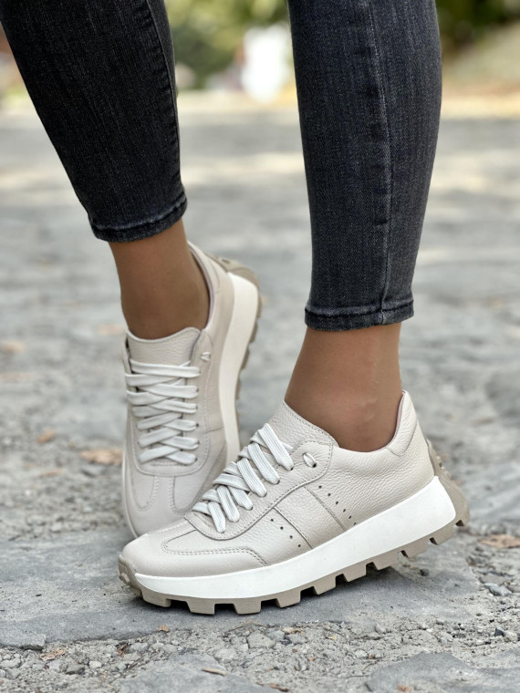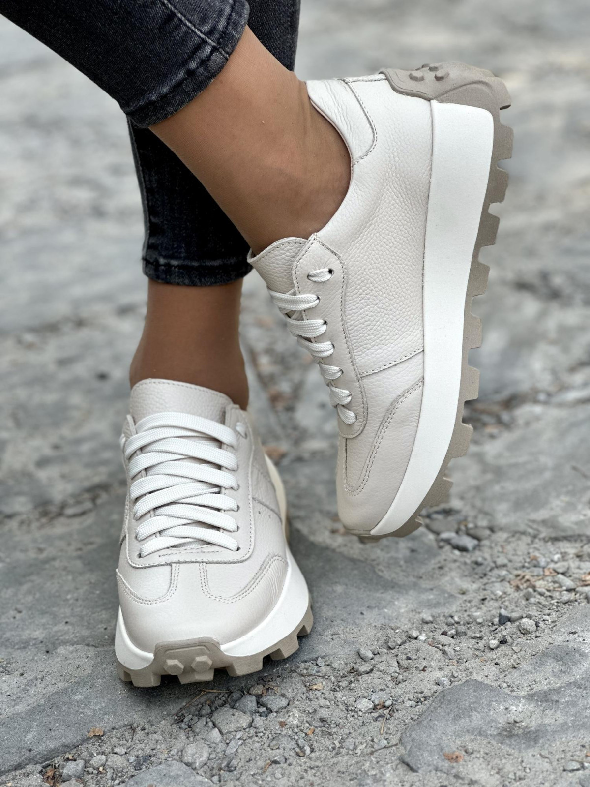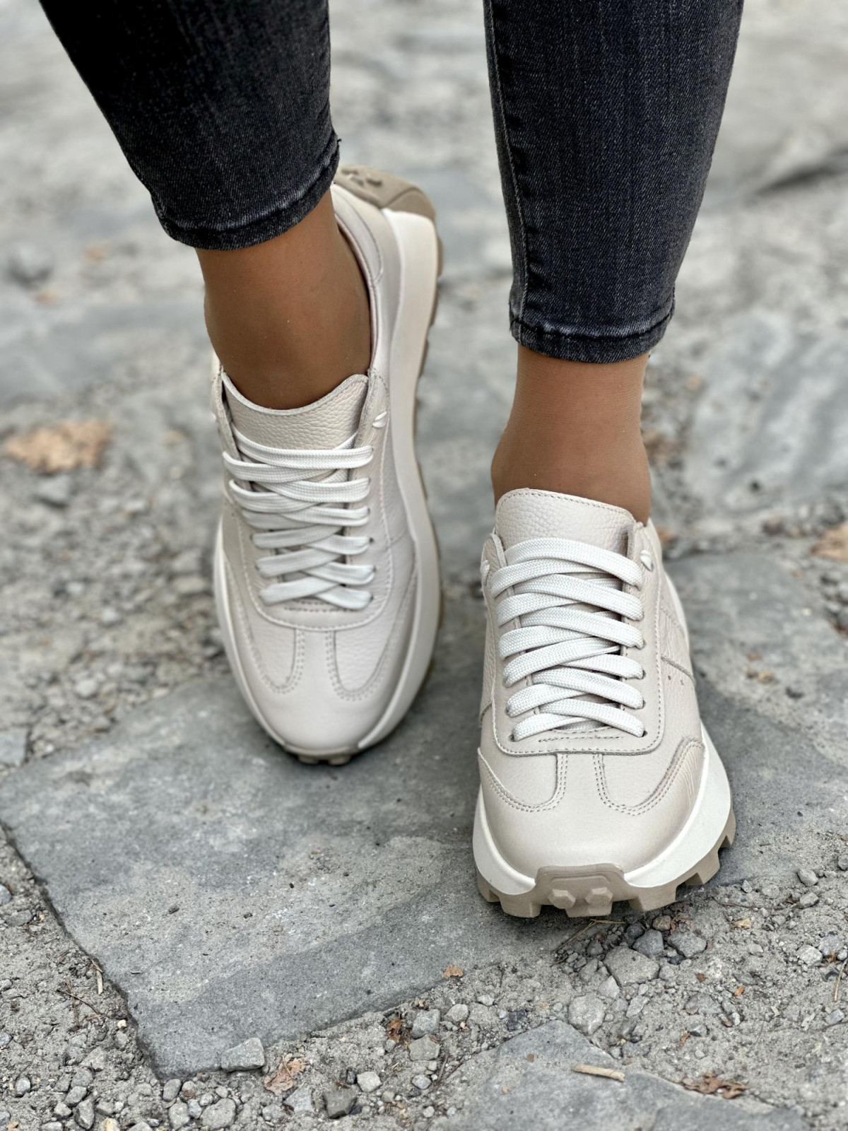 Te wyjątkowe sneakersy od marki OLEKSY to idealne połączenie stylu, komfortu i wysokiej jakości wykonania. W całości wykonane z naturalnej skóry – zarówno na zewnątrz, jak i wewnątrz – gwarantują doskonałą oddychalność i wygodę noszenia przez cały dzień. Beżowy kolor i nowoczesny design sprawiają, że te buty świetnie pasują do codziennych stylizacji, dodając im sportowego charakteru. Gruba, profilowana podeszwa zapewnia stabilność i amortyzację, a solidne sznurowanie pozwala na idealne dopasowanie do stopy. To doskonały wybór dla osób ceniących modny wygląd i komfort użytkowania w każdej sytuacji.
