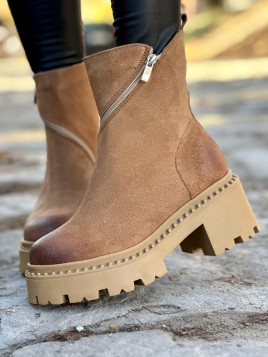 Ich ciepły, rudy kolor w połączeniu z masywną, bieżnikowaną podeszwą przyciąga wzrok i wywołuje emocje. To buty, które łączą funkcjonalność z bezkompromisowym stylem – są idealne na codzienne wyzwania, ale mają wyrazisty, nieco buntowniczy charakter. Surowy design i solidny zamek błyskawiczny na boku sprawiają, że te trapery nie są dla każdego – są dla kobiet, które lubią wyrażać siebie w każdej sytuacji.