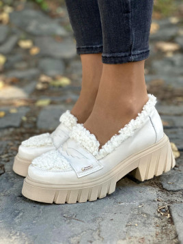Te eleganckie mokasyny marki OLEKSY to kwintesencja stylu i wygody. Wykonane w całości z naturalnej skóry, zarówno wewnątrz, jak i na zewnątrz, zapewniają doskonały komfort noszenia przez cały dzień. Wyprodukowane w Polsce, charakteryzują się precyzją wykonania oraz dbałością o każdy szczegół. Nietypowe, miękkie wykończenie imitujące wełnę oraz masywna, ale stylowa podeszwa sprawiają, że te mokasyny stanowią modny akcent każdej stylizacji.