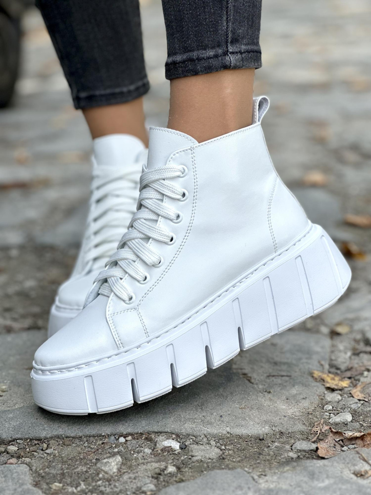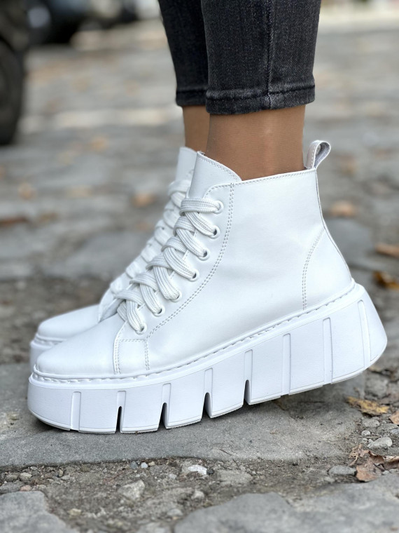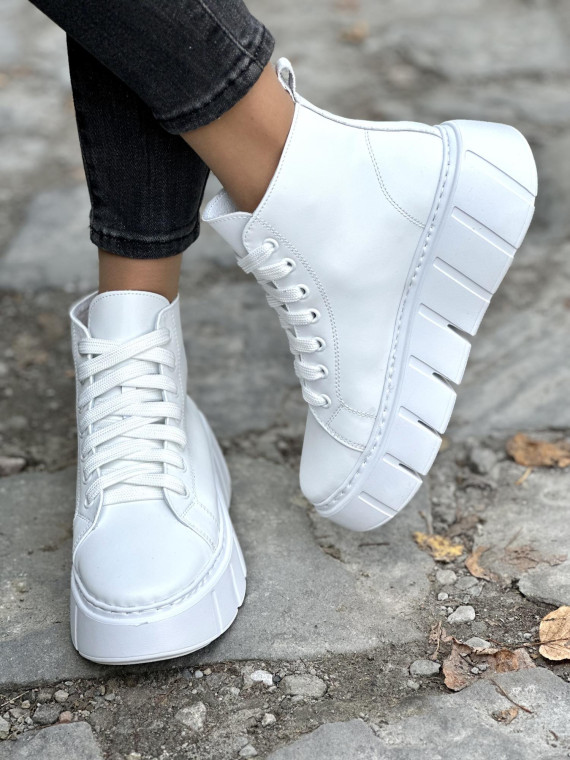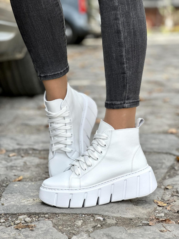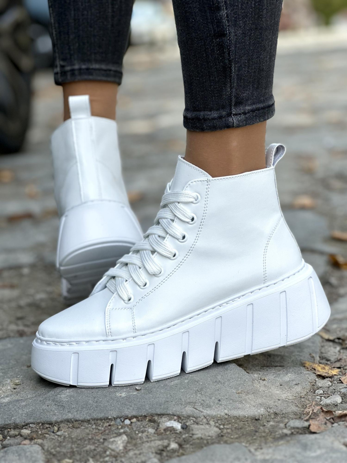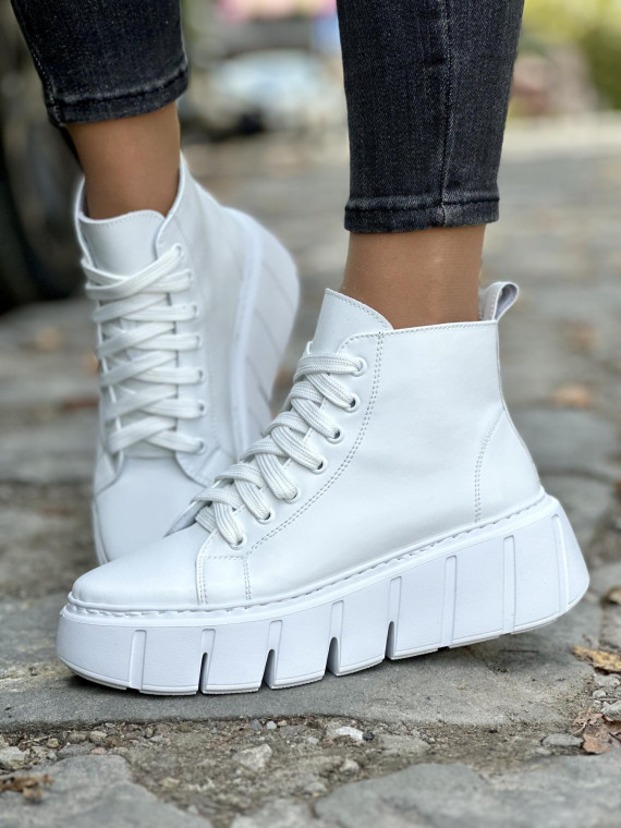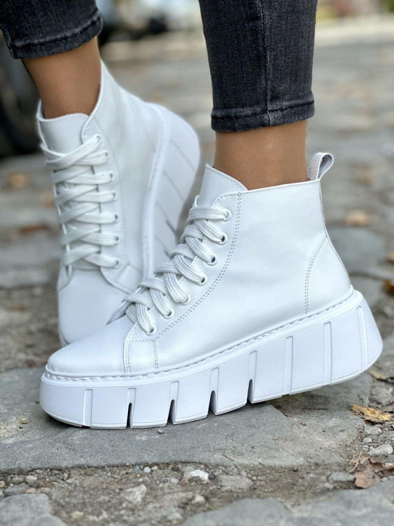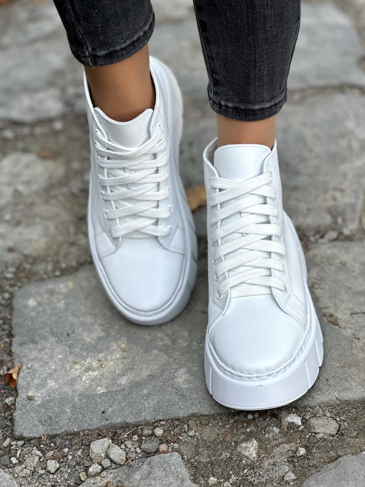 Polska produkcja gwarantuje dbałość o każdy szczegół oraz trwałość, na której możesz polegać. Uniwersalna, biała kolorystyka tych sneakersów sprawia, że są one doskonałym dodatkiem do wielu stylizacji – zarówno casualowych, jak i bardziej sportowych. Wysokie sznurowanie zapewnia świetne dopasowanie, a minimalistyczny, elegancki wygląd przyciąga wzrok i dodaje szyku każdemu outfitowi.