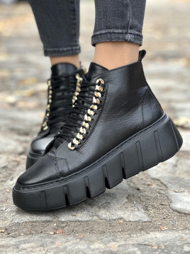 Patrząc na te sneakersy, widzisz doskonałość w każdym detalu – od starannie wyprofilowanej cholewki po masywną, stabilną podeszwę. Czarne wykończenie z eleganckim połyskiem podkreśli Twój charakter i doda Ci pewności siebie. Gdziekolwiek się nie pojawisz, spojrzenia będą skierowane na Twoje stopy.