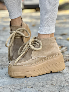 Masz przed sobą botki, które zostały zaprojektowane tak, aby łączyć wygodę z modnym wyglądem. Wyższa platforma doda Ci kilku centymetrów, subtelnie wydłużając nogi i dodając elegancji do każdej stylizacji. Beżowy, uniwersalny kolor z matowym wykończeniem sprawia, że pasują praktycznie do wszystkiego – od dżinsów po sukienki, od eleganckich stylizacji po te bardziej casualowe.
