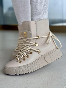 Zwróć uwagę na delikatne, a jednocześnie solidne wykonanie tych botków. Wykonane z naturalnej skóry najwyższej jakości, kuszą eleganckim, beżowym odcieniem, który idealnie dopasowuje się do każdej stylizacji. To kolor, który będzie pasował do wszystkiego, co masz w szafie – od codziennych jeansów po eleganckie sukienki. Klasyczna forma i subtelne detale, takie jak złote wykończenia przy oczkach sznurowadeł, sprawiają, że to obuwie przyciągnie każde spojrzenie. Gdziekolwiek pójdziesz, te botki będą Cię reprezentować – stylowo, elegancko, z klasą.