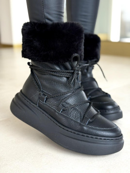Zamknij oczy i wyobraź sobie, jak to jest wsunąć stopy w te luksusowe śniegowce. Najpierw poczujesz miękkie, ciepłe futerko, które otula Twoje nogi. Skóra – elegancka, wytrzymała i pełna charakteru – dopasowuje się do kształtu Twojej stopy, dając uczucie otulenia. Każdy krok to połączenie stabilności i lekkości, dzięki specjalnej podeszwie, która amortyzuje każdy ruch. I choć są to buty zimowe, ich wyjątkowy design sprawia, że wcale nie wyglądają masywnie – wręcz przeciwnie, wysmuklają nogę i dodają stylizacji elegancji.