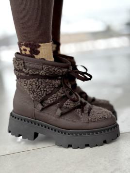 Te śniegowce to połączenie wyjątkowego designu z najwyższej jakości skórą naturalną. Miękka, fakturowana skóra w połączeniu z modnym futerkiem przykuwa wzrok i sprawia, że każdy zimowy spacer nabiera luksusowego charakteru. Głęboki, czekoladowy odcień sprawia, że buty idealnie wpisują się w zimowe trendy, a jednocześnie łatwo je zestawić z każdą stylizacją – od puchowej kurtki po elegancki płaszcz.