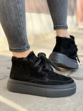 Czarne, minimalistyczne wykończenie pasuje do każdego zimowego outfitu. Czy to casualowy spacer po mieście, czy weekendowy wypad za miasto – zawsze będziesz wyglądać stylowo. Grube sznurowadła dodają charakteru, a futerko przy kostce wprowadza nutkę elegancji.