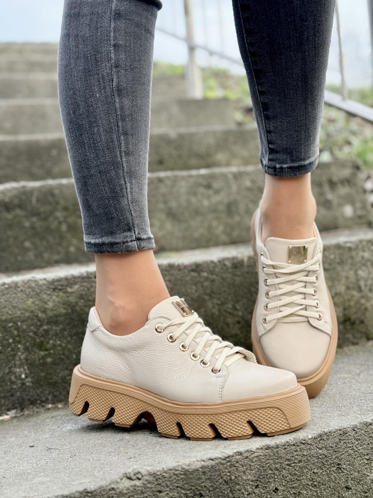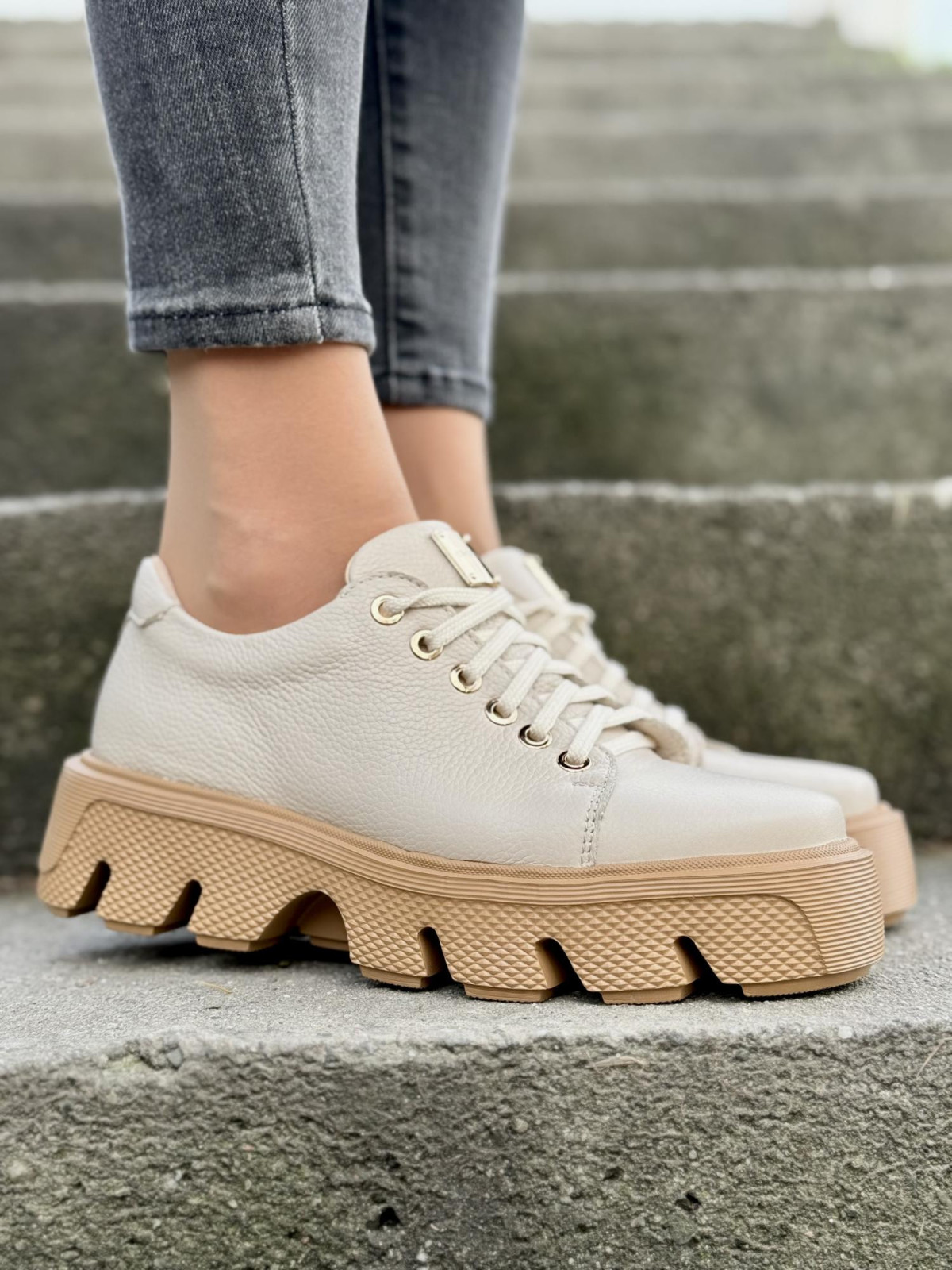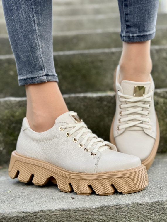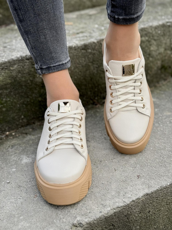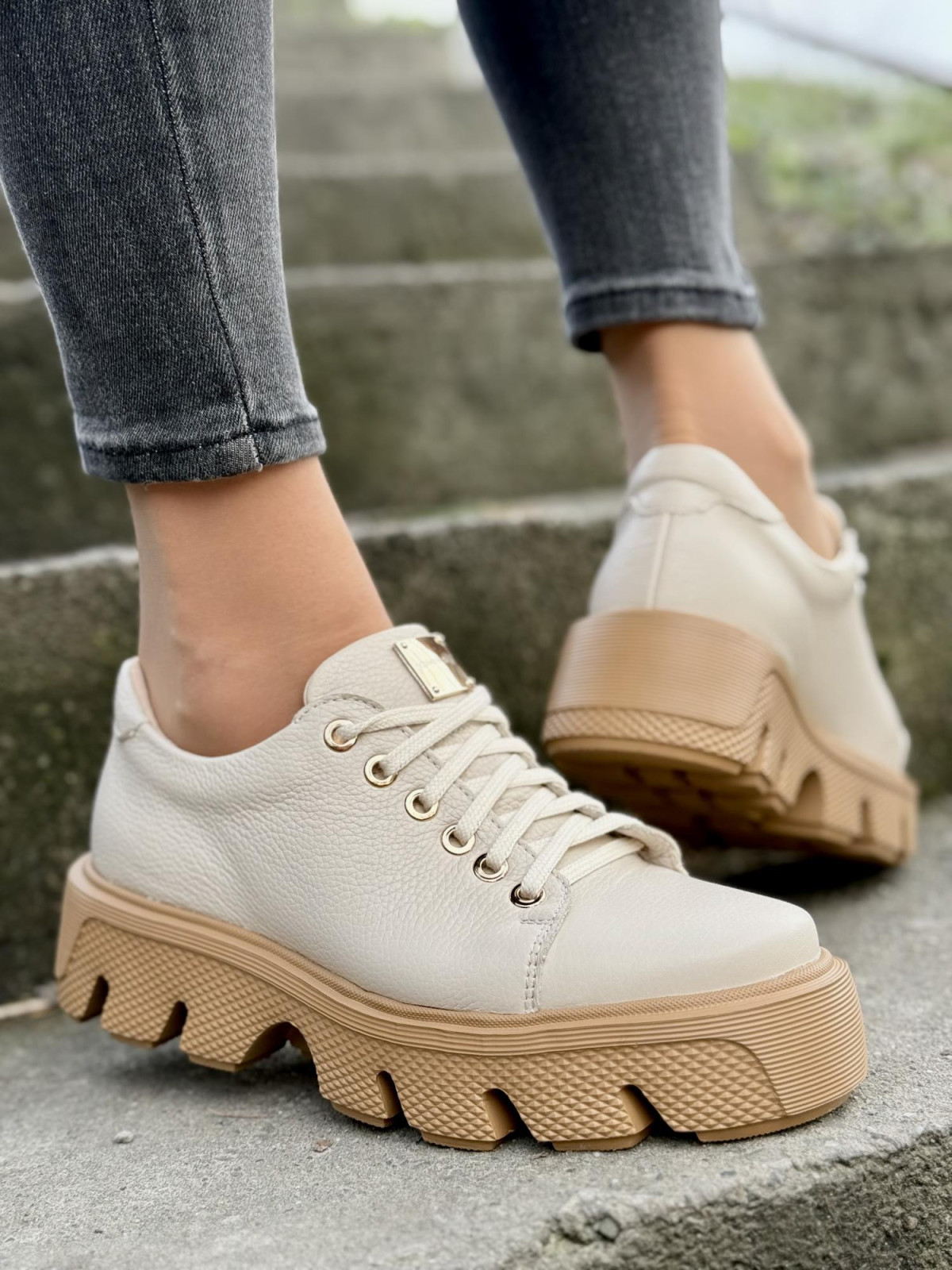 Te sneakersy to coś więcej niż zwykłe buty. To manifest Twojego stylu. Subtelna elegancja naturalnej skóry połączona z nowoczesną, wyjątkową podeszwą sprawia, że nie przejdziesz niezauważona. Czyż nie zasługujesz na to, aby Twoje obuwie podkreślało Twoją wyjątkowość? Te sneakersy pasują zarówno do jeansów, jak i do eleganckich spodni czy sukienek. Idealne na każdą okazję.