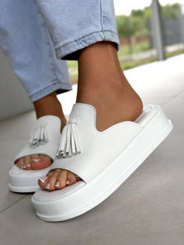 Zobacz je tylko raz. Białe, eleganckie, wykończone z dbałością o każdy detal. W tych klapkach nie przejdziesz niezauważona — przyciągają spojrzenia jak magnes. Nie dlatego, że są krzykliwe. Dlatego, że są idealne. A idealne rzeczy zawsze rzucają się w oczy.