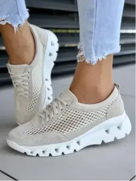 Te sneakersy to mistrzostwo formy i treści. Subtelny, neutralny kolor pasuje do wszystkiego – od jeansów po sukienki. Ażurowa siateczka dodaje im lekkości i charakteru, a innowacyjna, ząbkowana podeszwa to nie tylko efektowny akcent, ale też stabilność i sprężystość w każdym kroku.