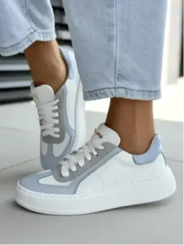 Design z klasą – subtelne połączenie błękitu, szarości i bieli sprawia, że pasują zarówno do casualowych jeansów, jak i stylowej sukienki.