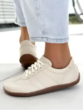 Wnętrze wykonane z miękkiej skóry naturalnej otula stopę jak druga skóra. Podeszwa z elastycznej gumy amortyzuje kroki i zapewnia doskonałą przyczepność. Kolor? Neutralny, elegancki krem – pasuje do każdej stylizacji. Od dżinsów po sukienkę.