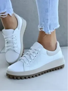 Klasyczna biel przełamana beżowym akcentem – uniwersalna i ponadczasowa. W połączeniu z nowoczesną, traperową podeszwą daje efekt: „wow, jesteś modna i wiesz, jak to się robi”. Idealne do dżinsów, do casualowej sukienki, do marynarki. Na spacer, do pracy, na weekendowy wypad.