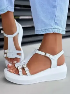 Biała, czysta forma i subtelne złote klamerki tworzą połączenie klasyki z nowoczesnością. Te sandałki są stworzone, by pasować zarówno do lnianej sukienki na wakacjach, jak i do dżinsów na spotkanie z przyjaciółką.