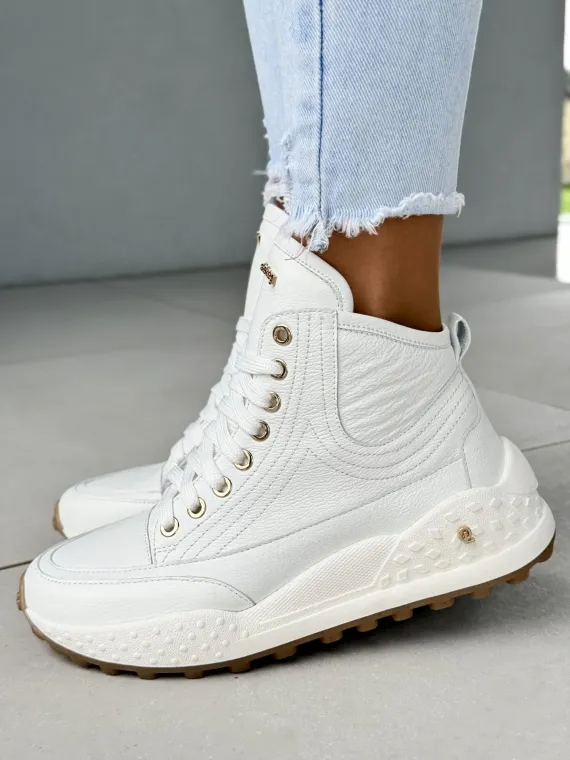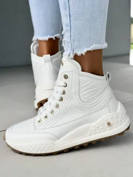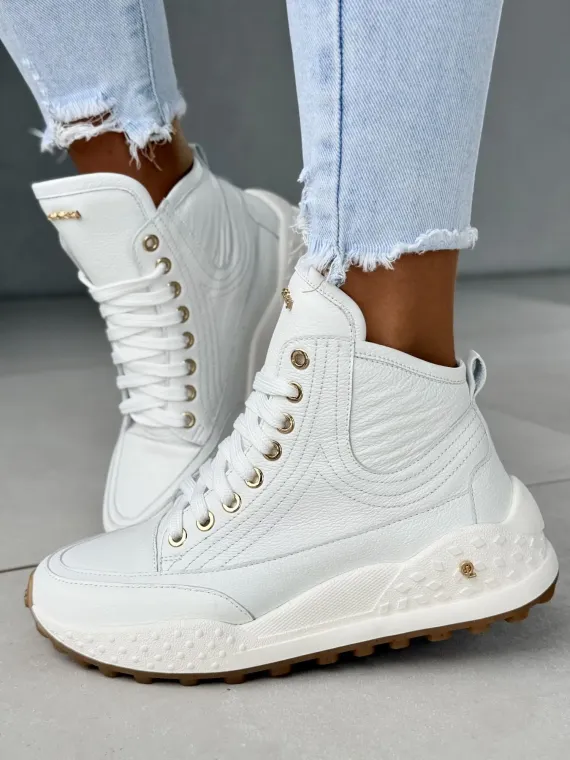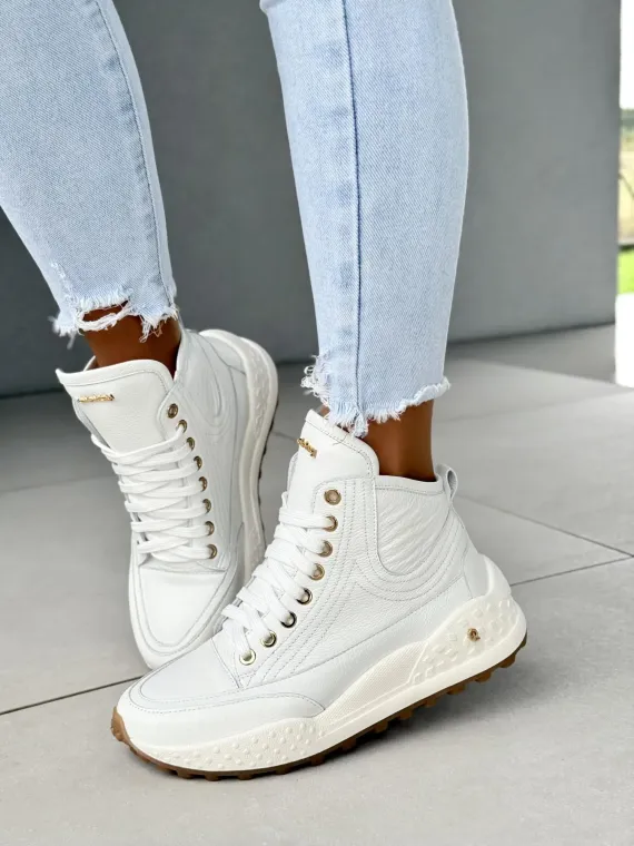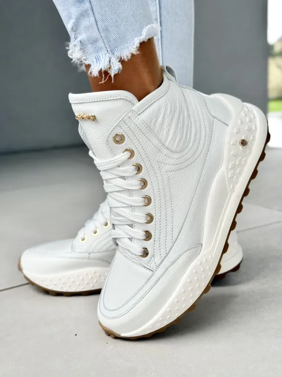 Ten model to efekt godzin precyzyjnej pracy, dziesiątek poprawek i ogromnej pasji do kobiecego piękna. Detale? Złote oczka, solidne przeszycia, podeszwa z antypoślizgowym bieżnikiem i elegancka cholewka, która subtelnie podkreśla sylwetkę. A wszystko to w odcieniu śnieżnej bieli, który rozjaśni każdy Twój outfit.