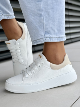 👉 Design, który pasuje do Ciebie – minimalistyczna biel z beżowym akcentem to klasyka w nowoczesnym wydaniu. Pasują zarówno do jeansów, jak i zwiewnej sukienki. Możesz je nosić do biura, na spacer, na weekendowy wypad. Uniwersalność, która nie nudzi.
