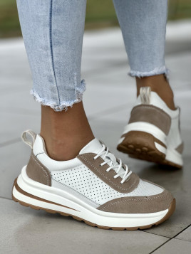 Wykonane z wysokiej jakości skóry naturalnej, zapewniają trwałość i elegancję. Ich delikatne, ażurowe wzory nadają im lekkości i świetnie wpisują się w letnią atmosferę. Sznurowanie zapewnia idealne dopasowanie i wygodę noszenia. Biało-beżowa kolorystyka sprawia, że są uniwersalne i łatwo dopasowują się do różnych stylizacji, zarówno na co dzień, jak i na bardziej formalne okazje.