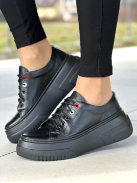 Bardzo lekkie i wygodne czarne trampki damskie na wyższej podeszwie light motion, marki Oleksy, to połączenie nowoczesnego designu z niezrównanym komfortem. Wykonane z naturalnej skóry, te trampki są gwarancją wysokiej jakości i trwałości, co sprawia, że są idealnym wyborem na wiosnę i lato.