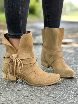 Beżowe botki damskie skórzane