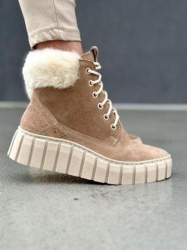 Model ten z zewnątrz wykonany jest ze skóry naturalnej zamszowej, a w środku wypełniony ociepleniem, które zapewni Ci ciepło w jesienne i zimowe dni.