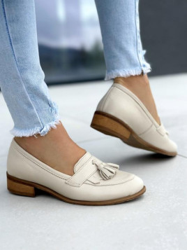 Beżowe mokasyny damskie skórzane