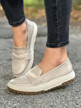 Beżowe mokasyny charakteryzują się klasycznym, a zarazem nowoczesnym designem. Są wsuwane, co sprawia, że są niezwykle wygodne i łatwe w zakładaniu. Cechują się prostą, elegancką linią, co czyni je uniwersalnym obuwiem, które pasuje do wielu stylizacji.