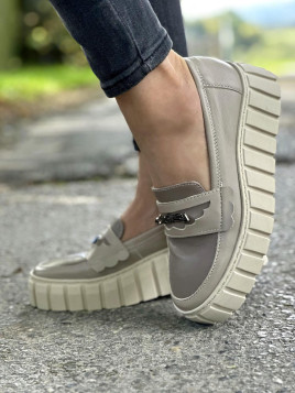 Beżowe mokasyny damskie skórzane to obuwie, które łączy w sobie klasyczny design z subtelnymi elementami marki, nadając mu charakterystyczny wygląd. Te mokasyny to doskonały wybór dla kobiet, które cenią sobie elegancję z oryginalnym akcentem.