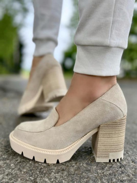 Beżowe półbuty damskie skórzane wykonane z naturalnej skóry zamszowej gwarantują komfort w użytkowaniu na co dzień i na ważnych wyjściach.
