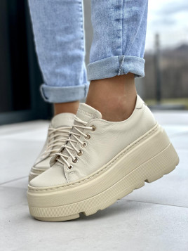Beżowe trampki damskie na grubej, lekkiej platformie, to obuwie, które łączy w sobie nowoczesny design, wygodę i subtelny element luksusu.