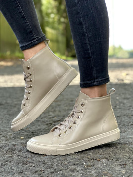 Beżowe trampki damskie skórzane marki Oleksy to połączenie wyjątkowej elegancji i komfortu.
