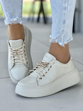 Beżowe trampki damskie skórzane OLEKSY to wyjątkowo stylowe i komfortowe obuwie, idealne na co dzień. Wykonane z wysokiej jakości skóry naturalnej, co gwarantuje trwałość i odporność na codzienne użytkowanie. Ich beżowy kolor świetnie komponuje się z różnorodnymi stylizacjami, dodając im elegancji i wdzięku.