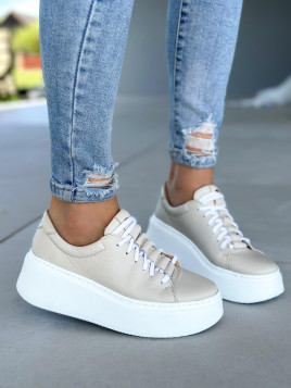 Beżowe trampki damskie skórzane