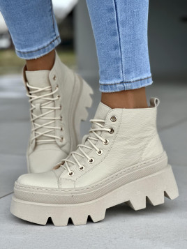 Beżowy kolor nadaje traperkom uniwersalnego charakteru, czyniąc je doskonałym wyborem na różne okazje. Gruba podeszwa dodaje obuwiu modnego wyglądu, a jednocześnie gwarantuje komfort podczas noszenia, zwłaszcza na trudniejszym terenie.
