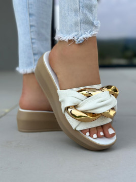 Białe klapki damskie skórzane