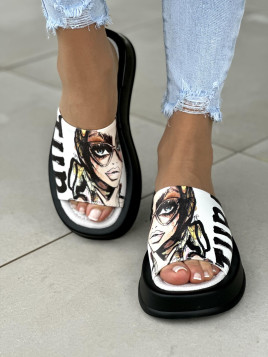 Białe klapki damskie z nadrukiem wykonane są z wysokiej jakości naturalnej skóry, co gwarantuje nie tylko trwałość, ale także komfort noszenia. Wyjątkowy nadruk dodaje im charakteru i oryginalności, wyróżniając je spośród innych stylizacji. Biały kolor sprawia, że są uniwersalnym dodatkiem do letniej garderoby, idealnym zarówno na plażę, jak i na spacer po mieście.