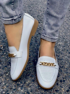 Mokasyny damskie Oleksy to modne obuwie wielosezonowe, które szczególnie będą pasować tym, którzy latem wybierają modele nie odkrywające w pełni stopy. Białe mokasyny damskie skórzane, stworzone ze skóry licowej dodadzą niebanalnego dopełnienia każdej Twojej stylizacji.