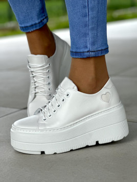 Białe trampki damskie na wysokiej podeszwie to połączenie stylu i wygody. Wykonane z naturalnej skóry Oleksy, są nie tylko trwałe, ale także dodają charakteru każdej stylizacji. Wyjątkowym elementem są ozdobne beżowe serca, które nadają im uroku i subtelności. Kombinacja klasycznego koloru białego z delikatnymi akcentami sprawia, że są one doskonałym wyborem zarówno na co dzień, jak i na bardziej casualowe okazje. Dzięki wysokiej podeszwie zapewniają również wygodę i wsparcie dla stóp przez cały dzień. Obuwie, które nie tylko przyciąga spojrzenia, ale także dba o komfort noszenia.