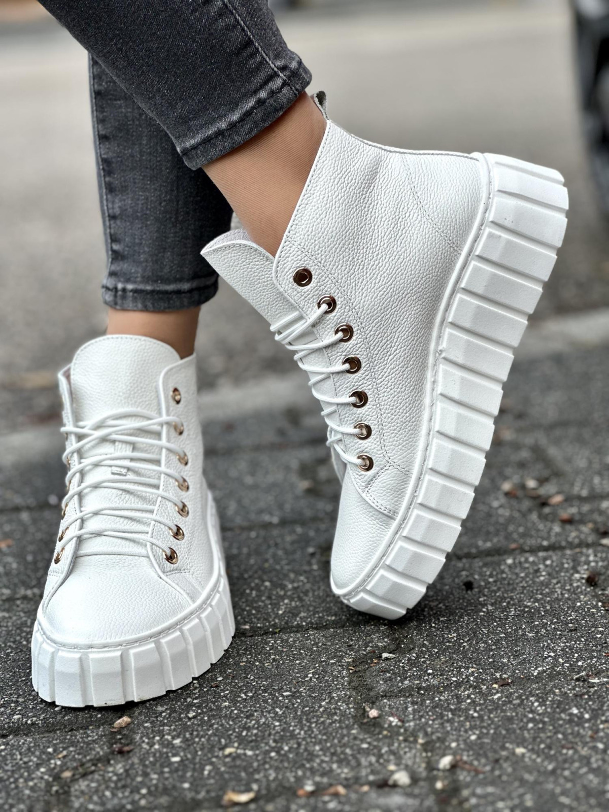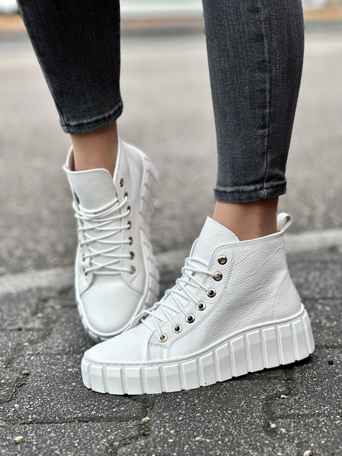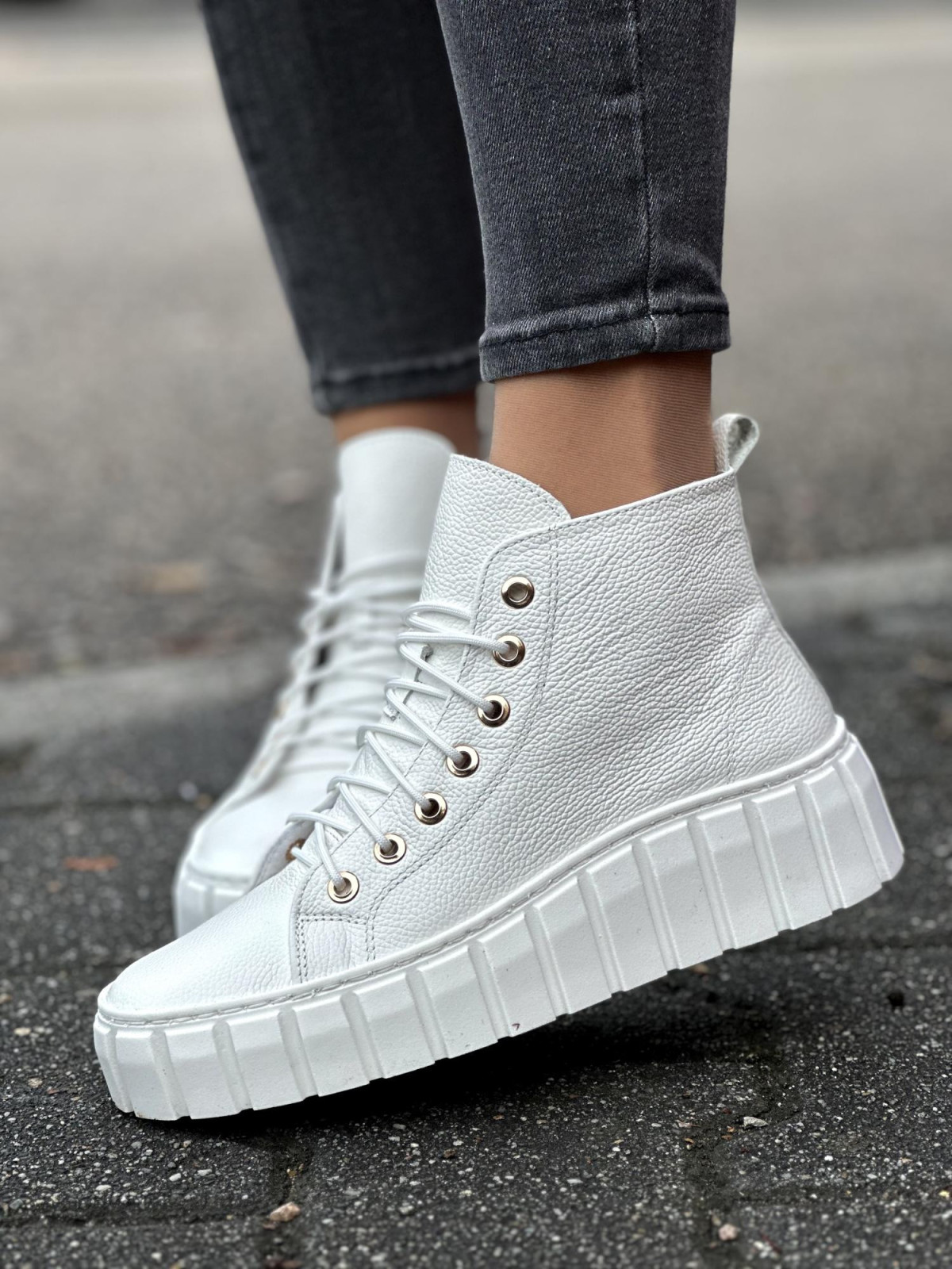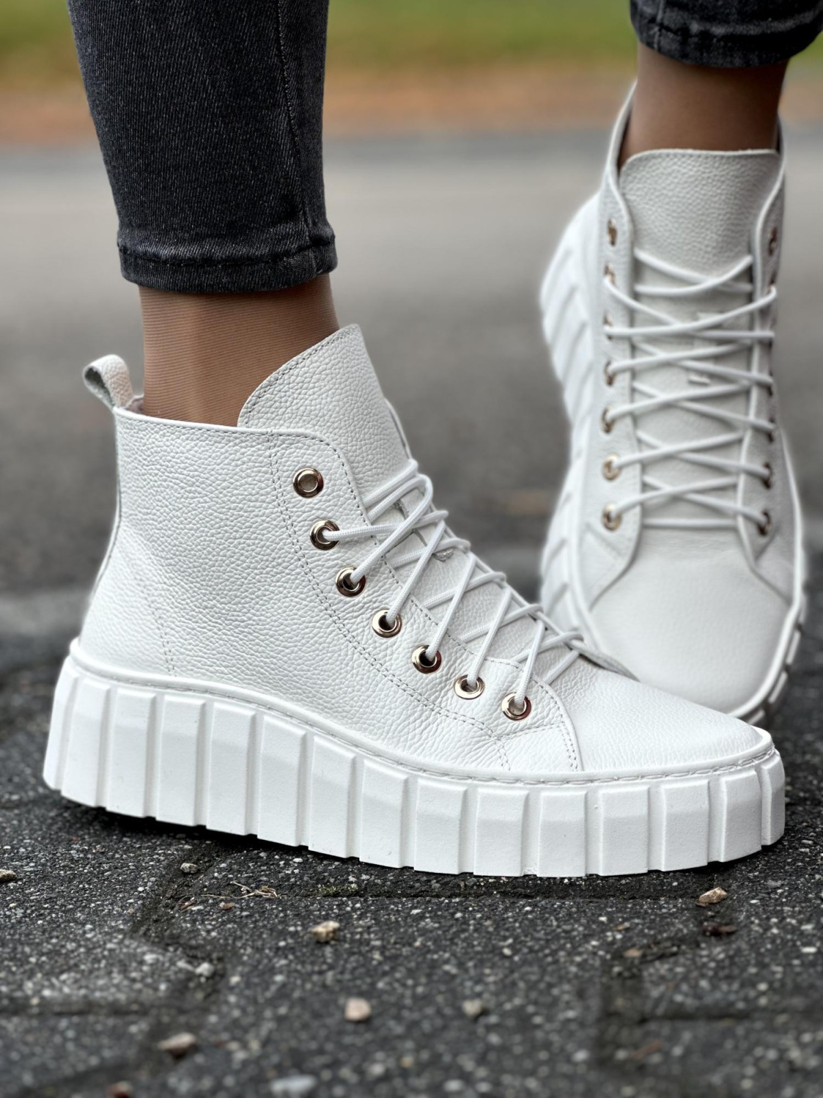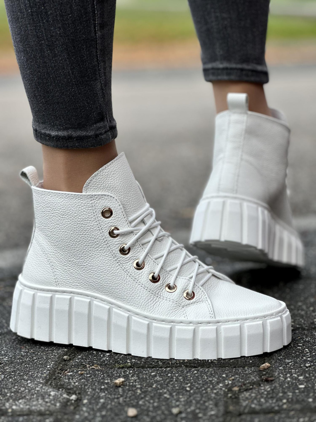 Trampki marki OLEKSY, wykonane w całości ze skóry naturalnej zarówno wewnątrz, jak i na zewnątrz, to doskonały wybór dla kobiet poszukujących stylowego i wygodnego obuwia. Wyprodukowane w Polsce, te trampki charakteryzują się nowoczesnym designem z grubą, wyrazistą podeszwą, która zapewnia doskonałą amortyzację i komfort podczas codziennego użytkowania. Skóra o subtelnej fakturze dodaje elegancji, a metalowe oczka przy sznurowadłach nadają im nowoczesnego, wyrazistego charakteru. Dzięki solidnemu wykonaniu i wysokiej jakości materiałom, trampki te sprawdzą się zarówno w miejskich, jak i casualowych stylizacjach, gwarantując trwałość oraz wygodę przez cały dzień. To idealny wybór dla kobiet ceniących modny wygląd i funkcjonalność w jednym.