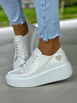 Białe trampki damskie marki Oleksy to połączenie stylu, wygody i wyjątkowego uroku. Wykonane z wysokiej jakości naturalnej skóry, trampki wyróżniają się nie tylko solidnym wykonaniem, ale także subtelnym, lecz efektownym dodatkiem w postaci ozdobnego beżowego serca.