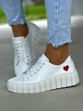 Białe trampki damskie z ozdobnym czerwonym sercem to połączenie klasycznego designu, subtelnego uroku i ekspresji koloru. Wykonane z wysokiej jakości naturalnej skóry, trampki wyróżniają się nie tylko solidnym wykonaniem, ale także oryginalnym detalami, które dodają im wyjątkowego charakteru.